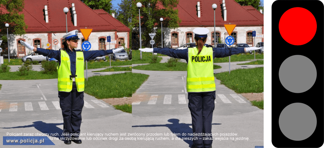 sygnału. Kierowcy oraz piesi, wobec których funkcjonariusz zwrócony jest tyłem lub przodem, mają