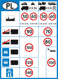 1. Znak D-39 „dopuszczalne prędkości” informuje o dopuszczalnych prędkościach obowiązujących na terytorium Rzeczypospolitej Polskiej.