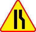 Ostrzegają o zwężeniu jezdni po stronie wskazanej na znaku, które może powodować utrudnienia ruchu.