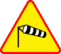1. Znak A-19 „boczny wiatr” ostrzega o miejscu, w którym mogą występować silne boczne podmuchy wiatru.