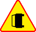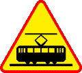 3. Znak A-21 „tramwaj” ostrzega o przejeździe przez tory tramwajowe; umieszczona pod znakiem tabliczka T-7 wskazuje układ torów i drogi na tym przejeździe.