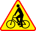 6. Znak A-24 „rowerzyści” ostrzega o miejscu, w którym rowerzyści wjeżdżają z drogi dla rowerów na jezdnię lub przez nią przejeżdżają.