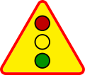 11. Znak A-29 „sygnały świetlne” ostrzega o miejscu, w którym ruch jest kierowany za pomocą sygnalizacji świetlnej.