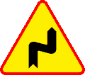 1) A-3 „niebezpieczne zakręty - pierwszy w prawo”