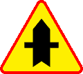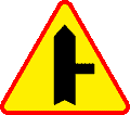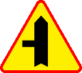 ostrzegają o skrzyżowaniu z drogą podporządkowaną, występującą po stronie wskazanej na znaku.